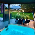 Die 2-Zimmer- Hochwertiges Ferienhaus Am See Fur Bis Zu 8 Personen liegt in etwa 3 km Entfernung vom Pegelturm Großer Goitzschesee und bietet Zugang zu vielen Sehenswürdigkeiten in der Umgebung. Die Villa in Pouch verfügt über Parkplätze und eine Terrasse mit Aussicht auf den See.